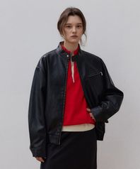 오버핏 필드 숏 레더 자켓_Subtle Black
