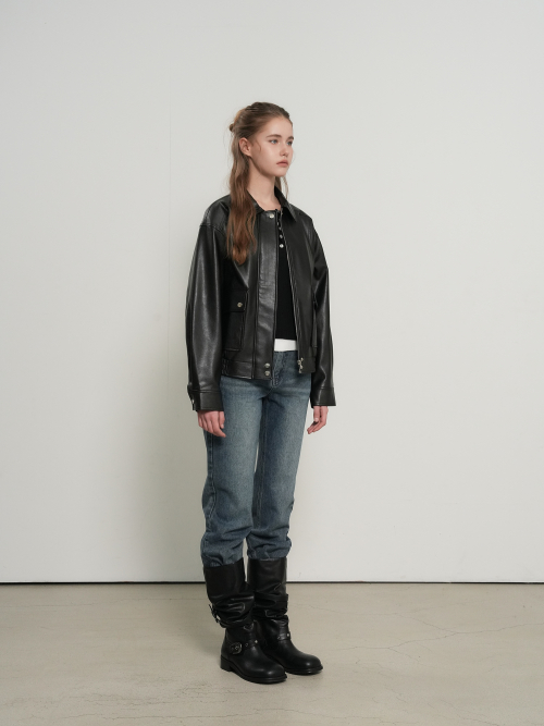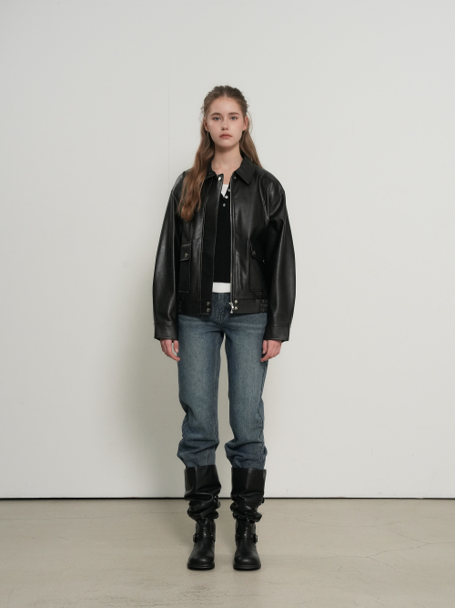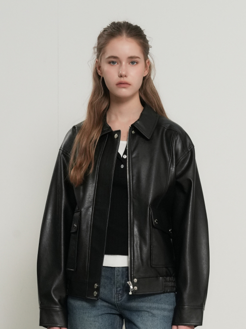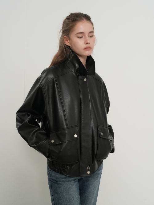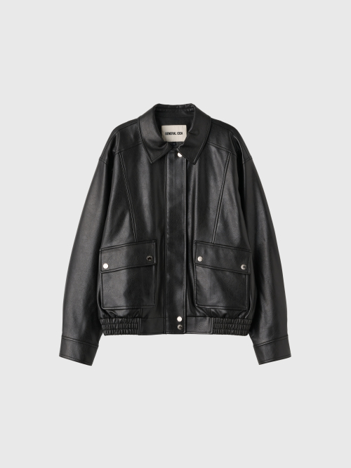 페이크 레더 포켓 블루종 점퍼 [BLACK] / GF1LJK502