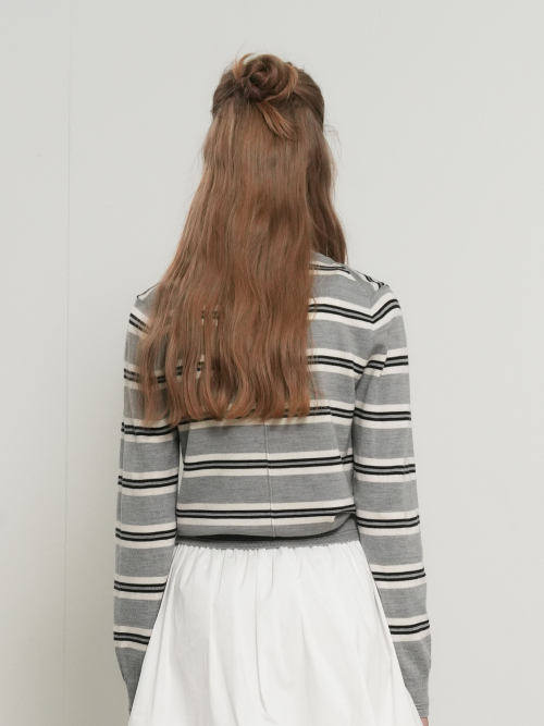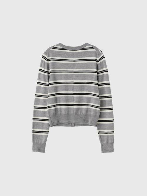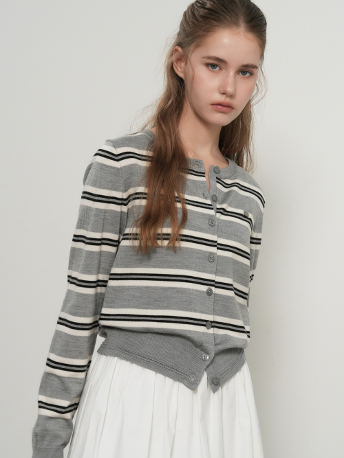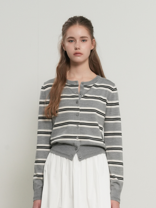 멀티 스트라이프 크루넥 가디건 [LIGHT GREY] / WBE1L04504