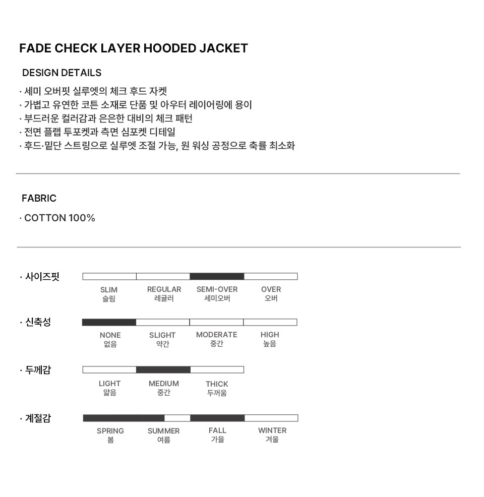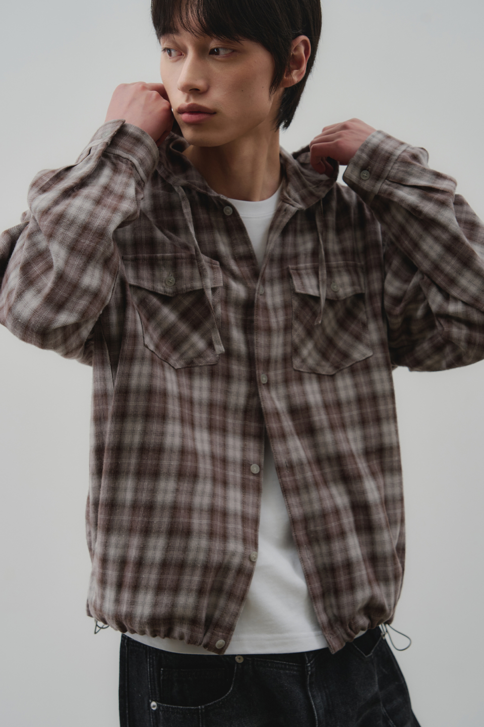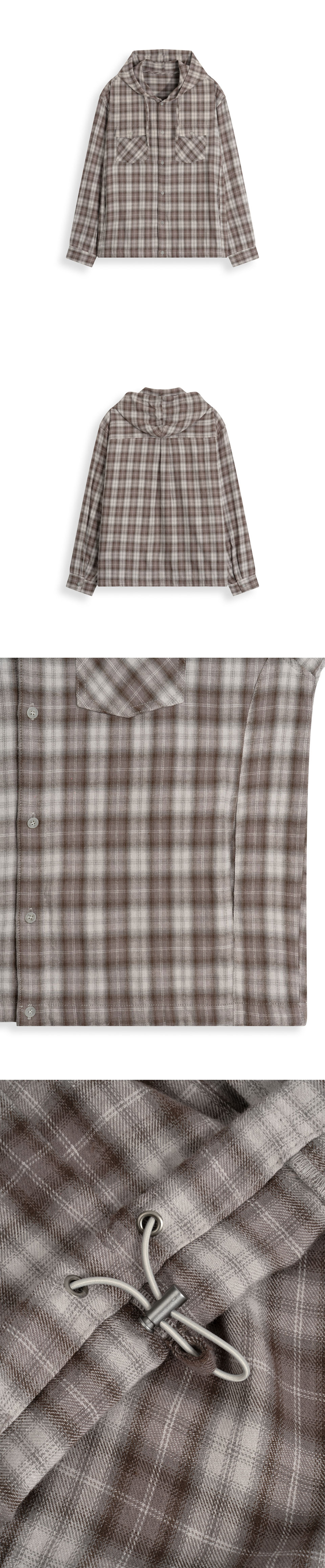 페이드 체크 레이어 후디드 자켓 [브라운]