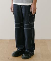 [미세키서울 맨X리제임스] Diagonal henley neck short sleeve BLACK