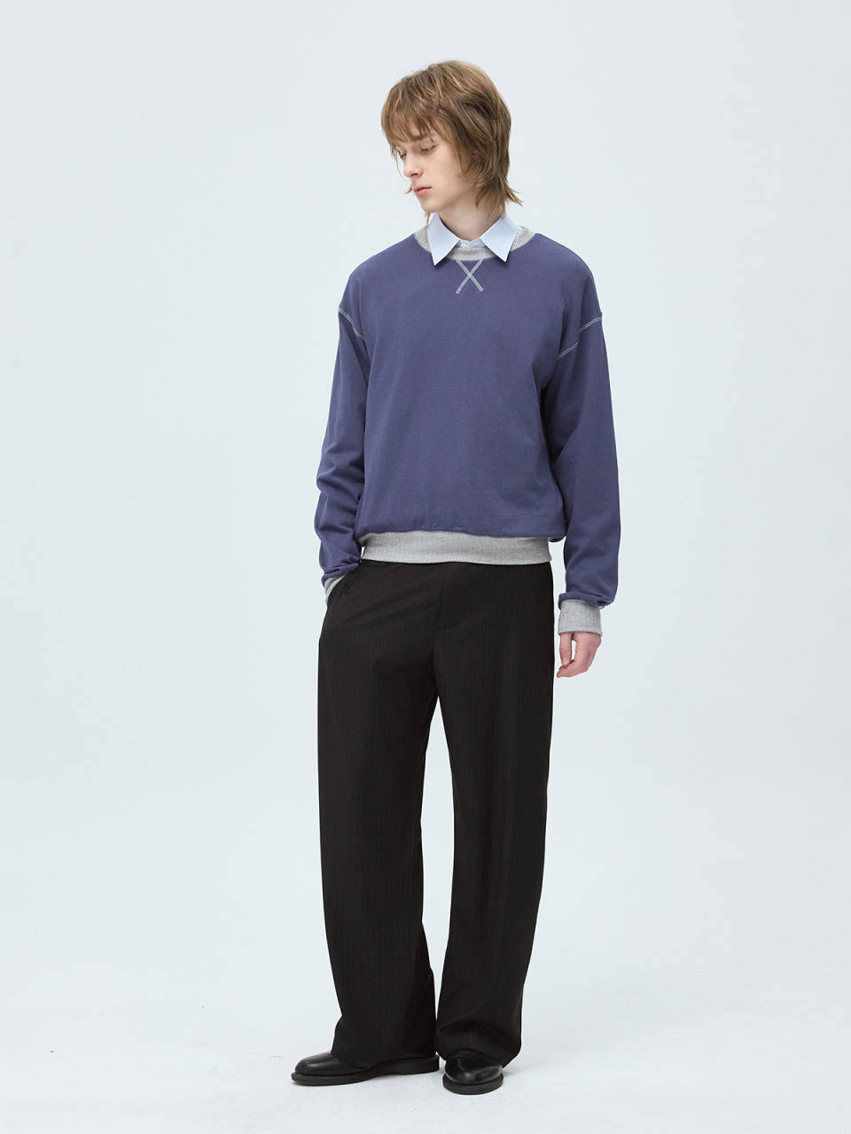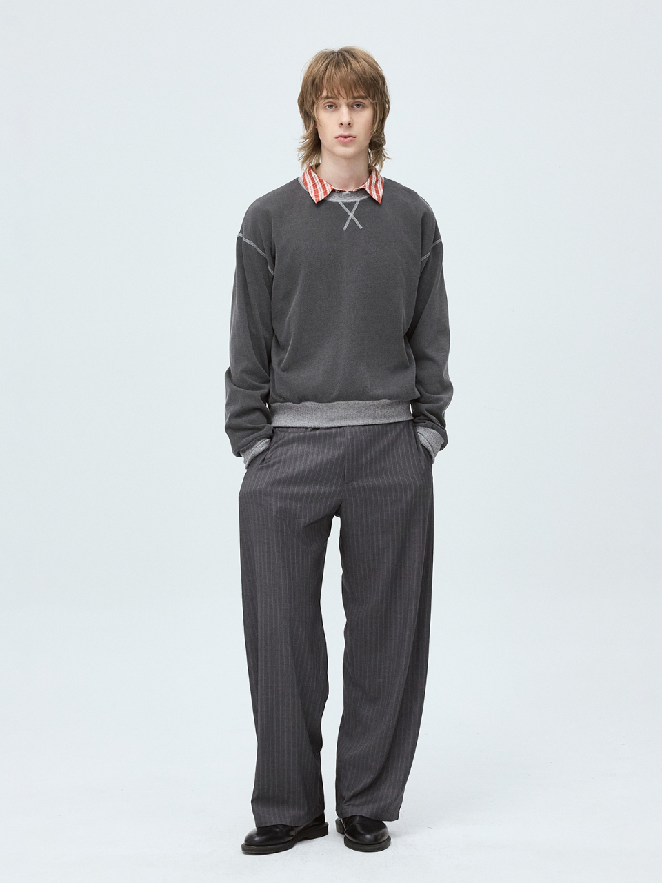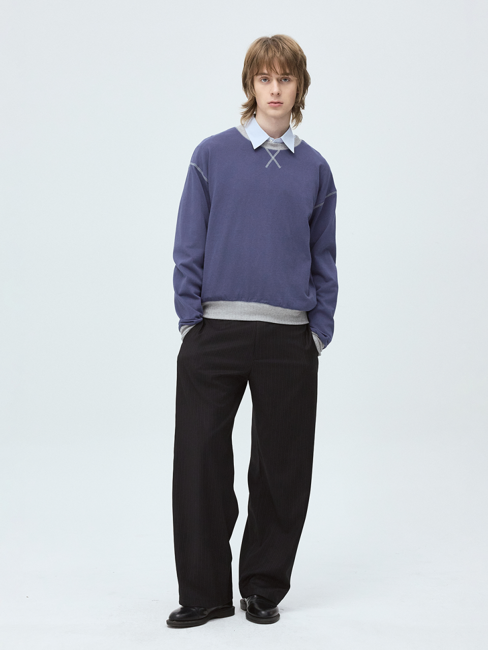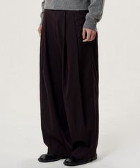 스트라이프 더블 핀턱 와이드 슬랙스 - 버건디