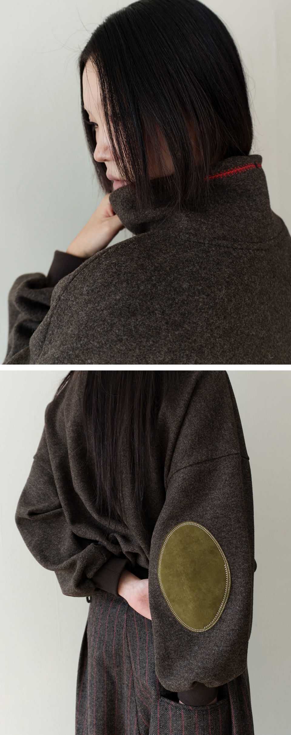 - 울 블렌딩 원단을 사용한 하이넥 풀오버