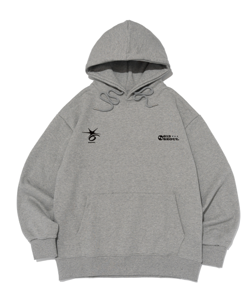 크랙 스티치 포인트 로고 후드 티셔츠 (그레이)