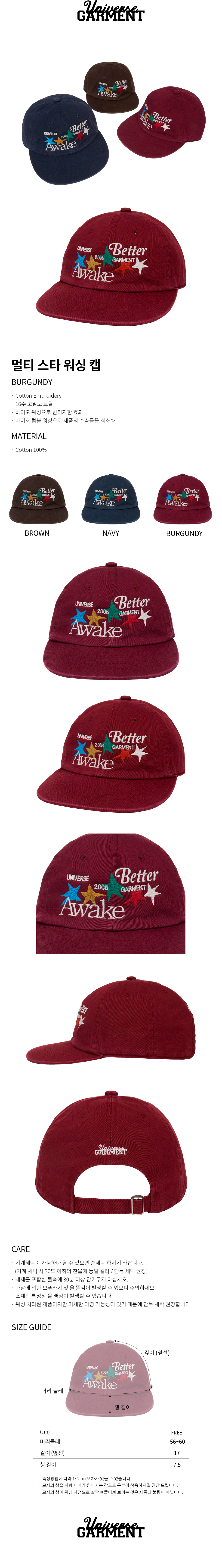 멀티 스타 워싱 캡_BURGUNDY