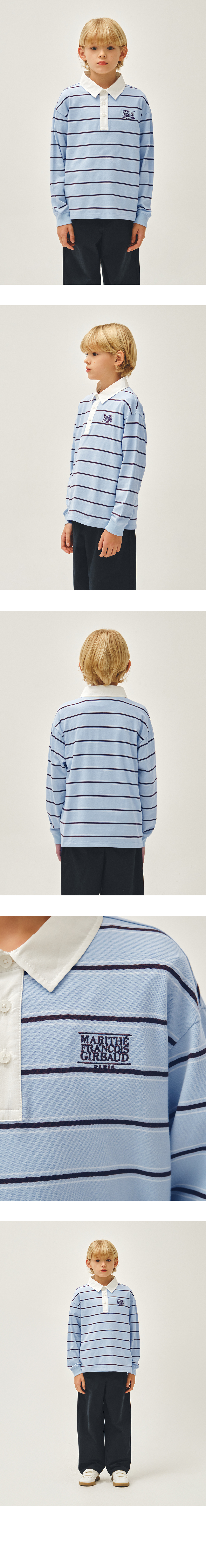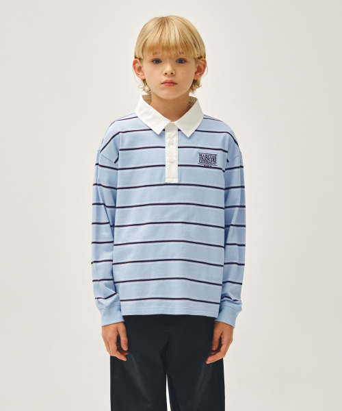 KIDS COLLAR STRIPE LONG SLEEVE TEE light blue