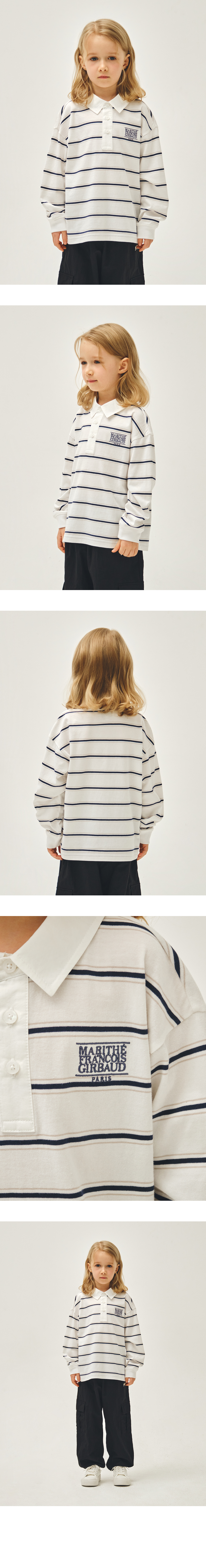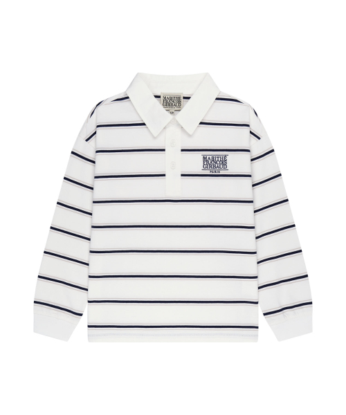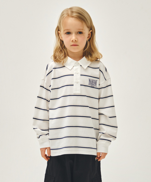 KIDS COLLAR STRIPE LONG SLEEVE TEE ivory