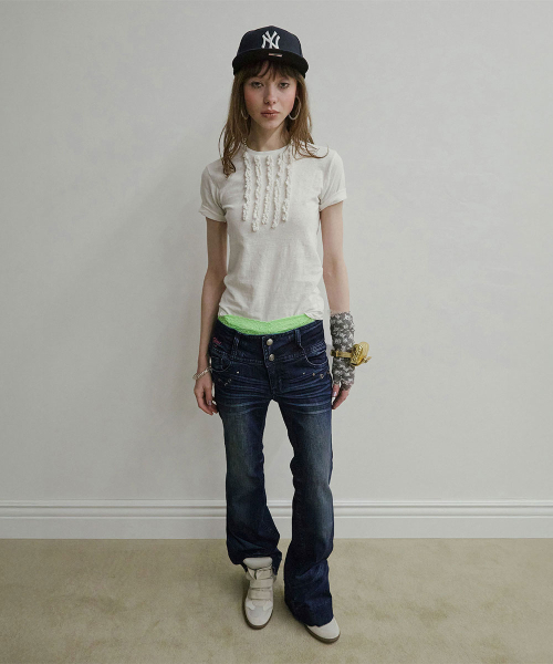 XS : Length 99.5 / Waist 35.5 / Hip 42.5 / Thigh 25 / Crotch 18.5 / Hem 25.5