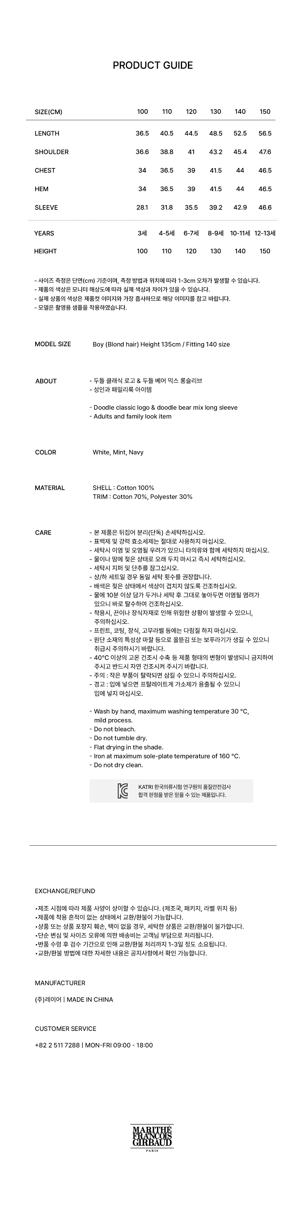 마리떼 키즈(MARITHÉ KIDS)는 마리떼 프랑소와 저버 특유의 프렌치 감성과 무드를 담은 키즈 라인. 마리떼 어덜트 라인과 함께 패밀리 룩을 연출할 수 있는 시그니처 아이템 미니 버전과, 아이들의 동심을 닮은 그래픽이 특징입니다.
