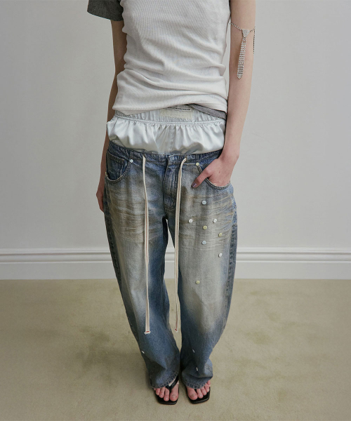 XS : Length 100 / Waist 35.5 / Hip 57.5 / Thigh 34.5 / Crotch 30.5 / Hem 24