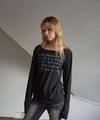 시스루 레터링 루즈핏 롱슬리브 블랙
