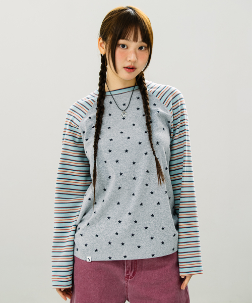 STRIPED STAR RAGLAN LS TEE GREY(CV2GSFT550A)