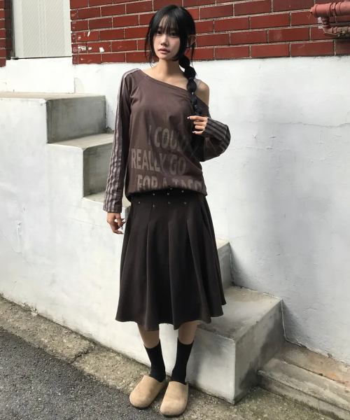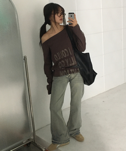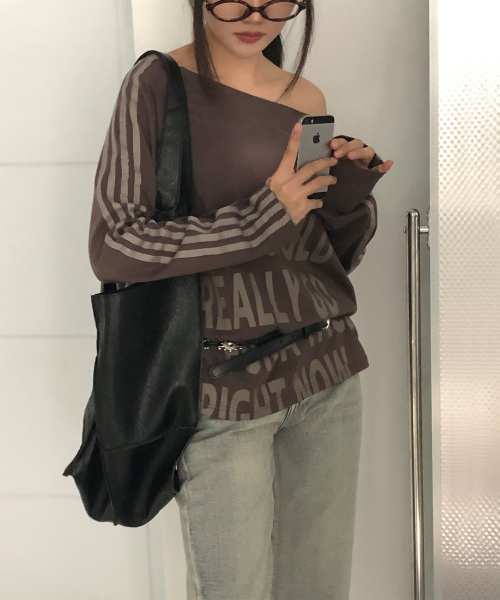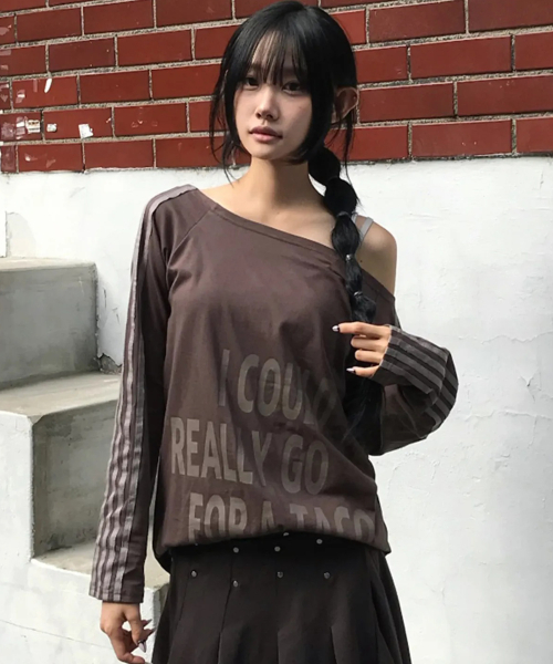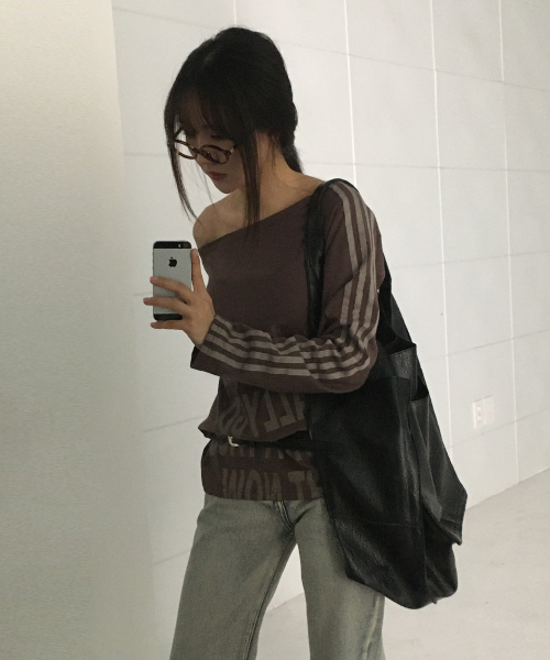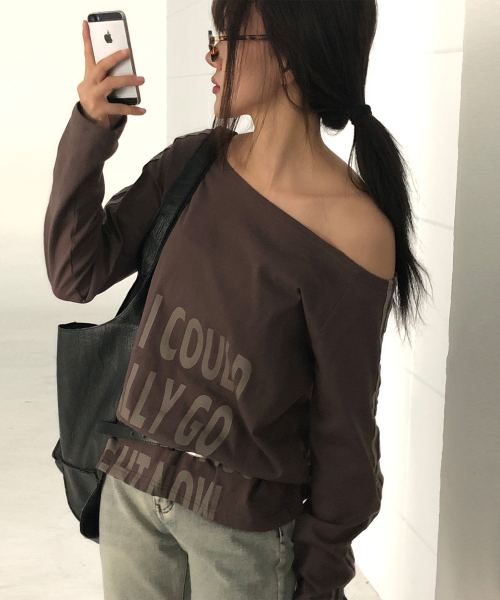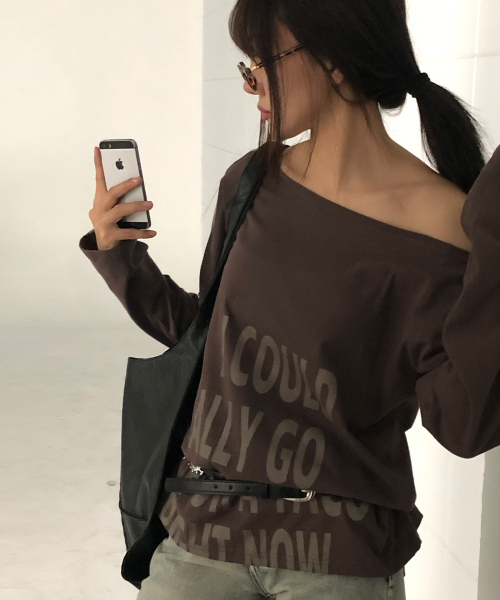 오버핏 시스루 오프숄더 프린팅 롱슬리브 티셔츠 _ 2COLOR