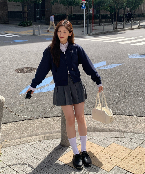 [미니피 PICK] UNISEX CROPPED ZIP-UP HOODIE_UDTS6A101_NAVY