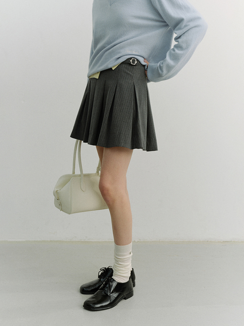 PLEATS MINI SKIRT_UDSK6A202_GREY STRIPE