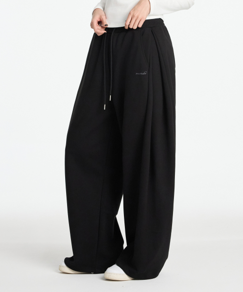 W 베이직 사이드 핀턱 와이드 벌룬 스웨트 팬츠 (2colors)