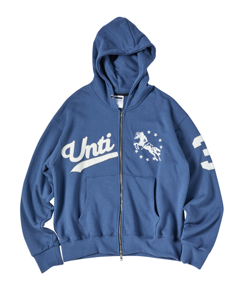 유니콘 바시티 엠블럼 후드집업 블루