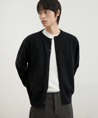 워셔블 세미 크롭 니트 가디건 블랙