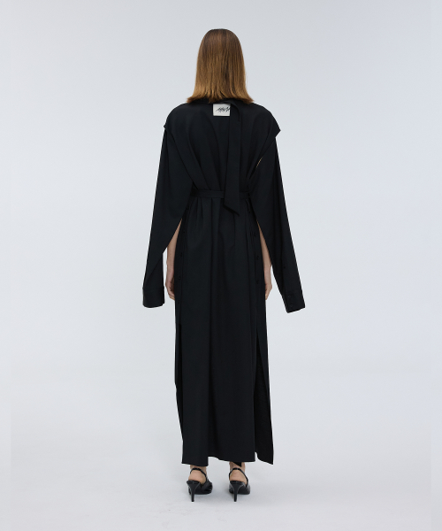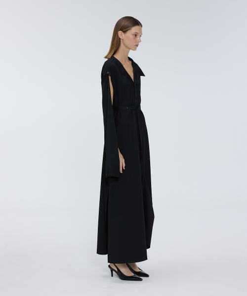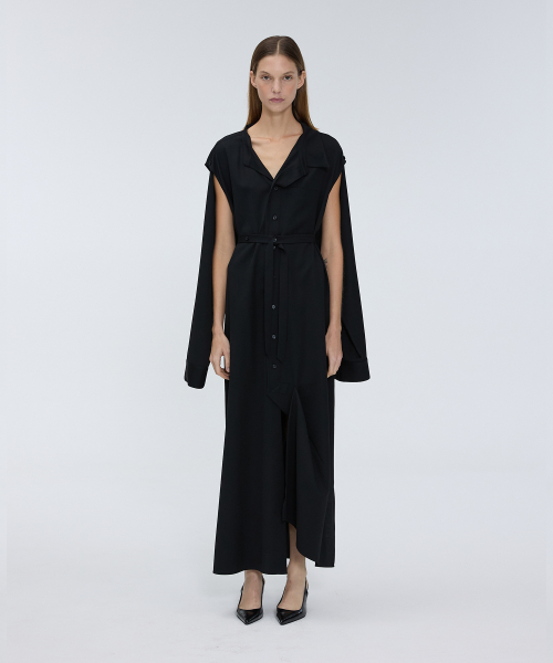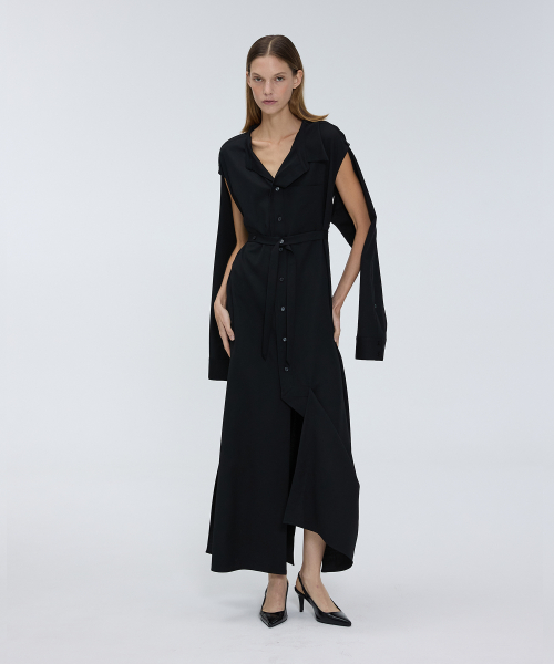 오프 슬리브 롱 셔츠 드레스