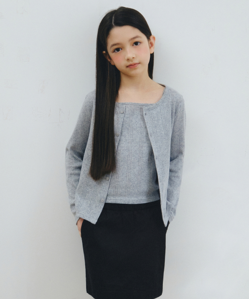 포인텔 슬리브리스 탑 가디건 세트 [멜란지 그레이]