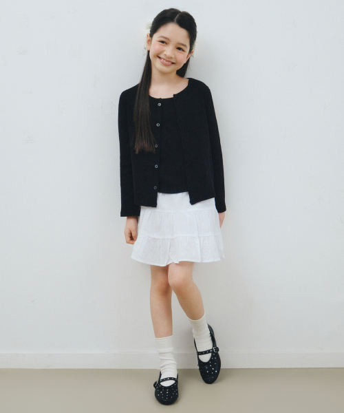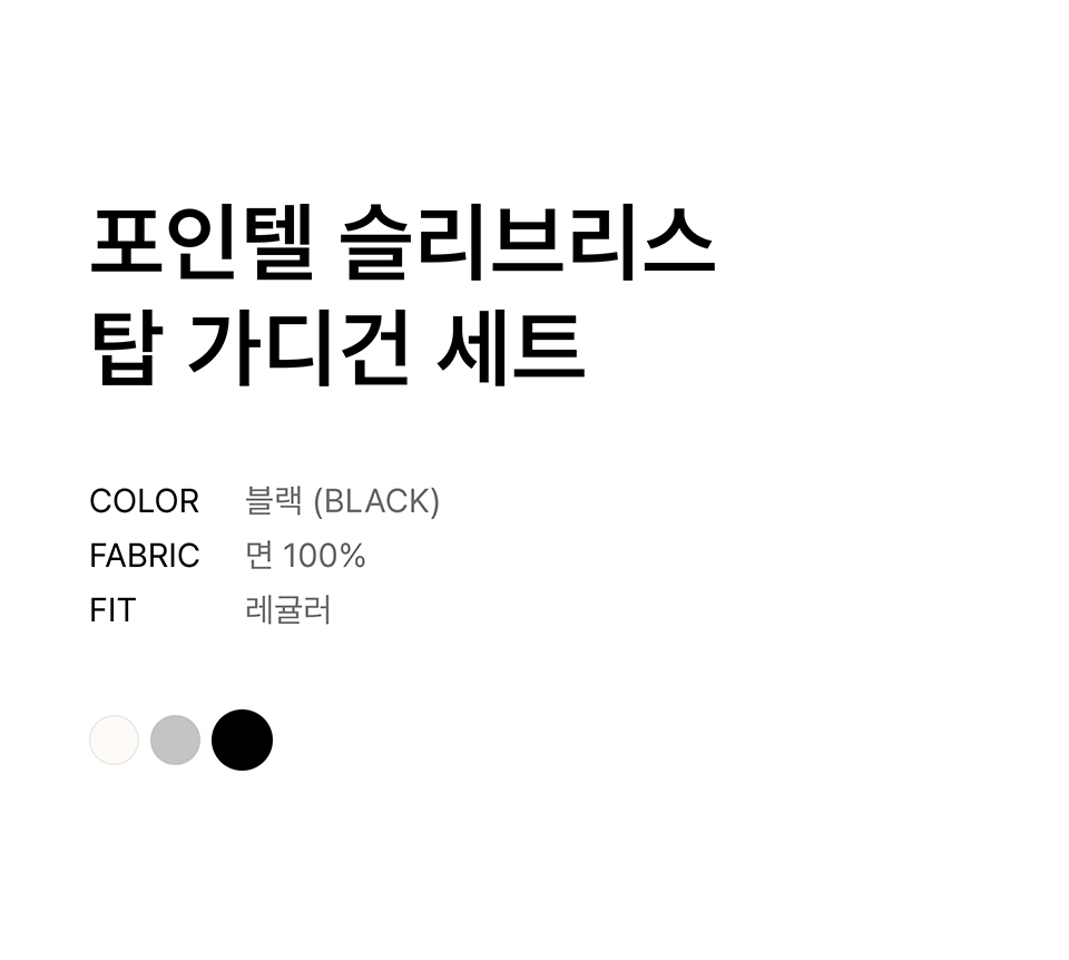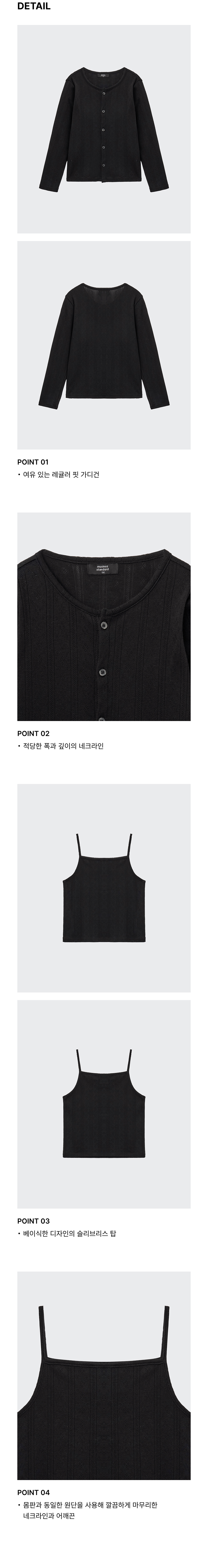 포인텔 슬리브리스 탑 가디건 세트 [블랙]
