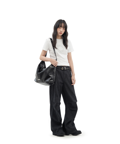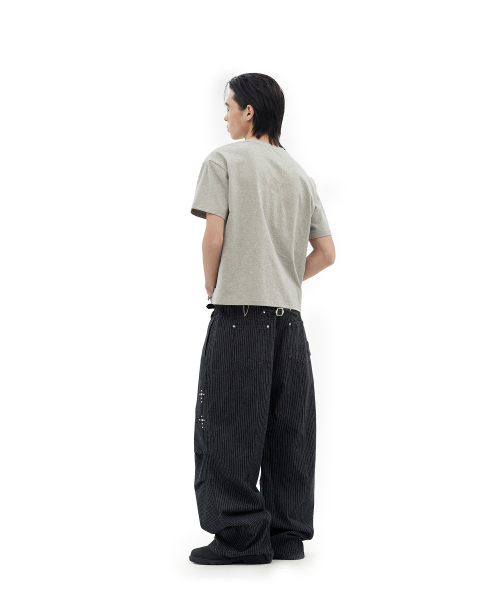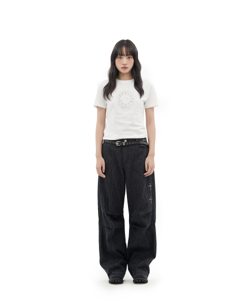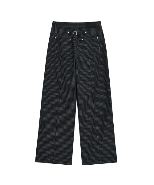 STUD PARACHUTE PANTS [STRIPE BLACK DENIM]