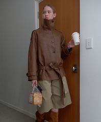 HIGH NECK LEATHER JACKET_BROWN