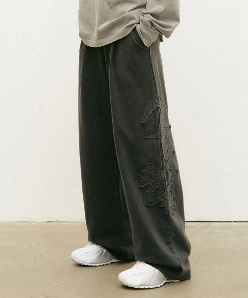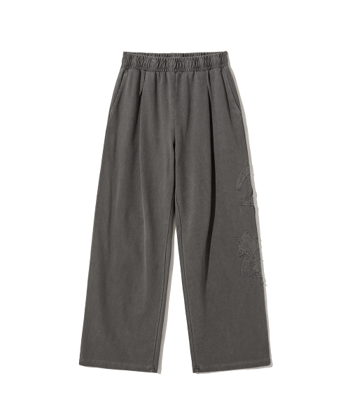 샤이니 아플리케 와이드 스웨트팬츠 차콜