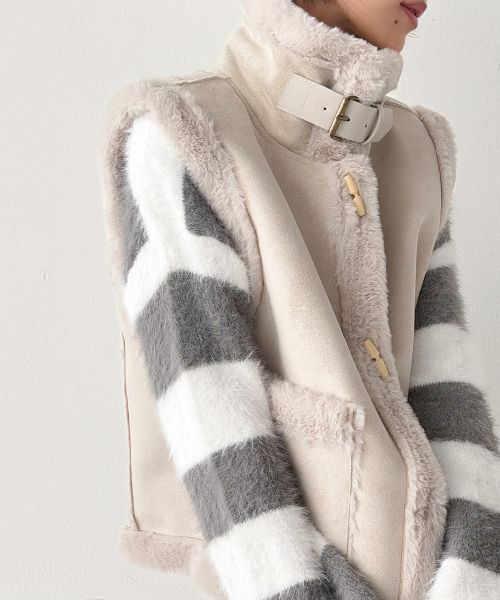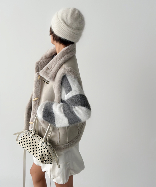 토글 여밈과 퍼 라인 디테일을 사용해 사랑스럽고 귀여운 무드를 자아냅니다.