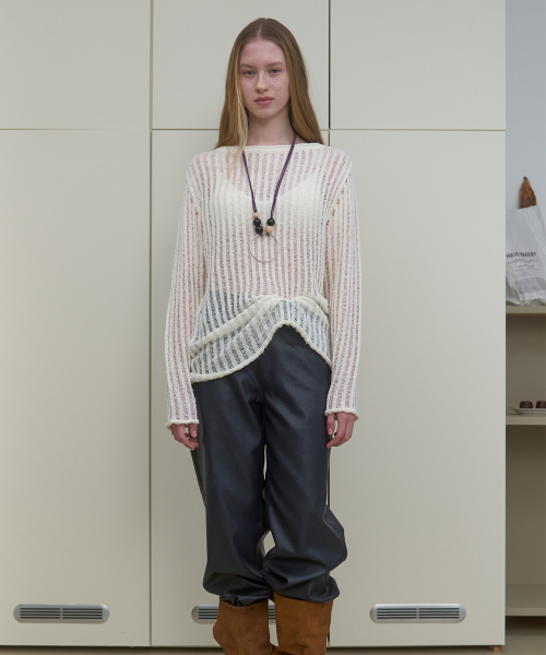 Hole Band Collar Cowl Neck Blouse OFF WHITE