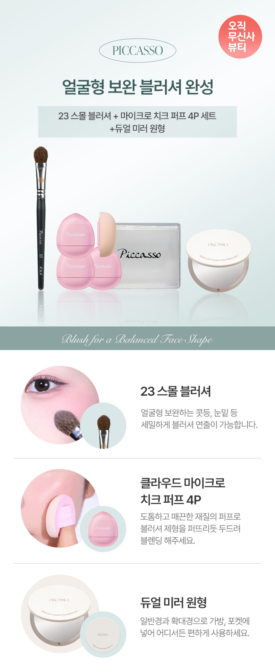 23 스몰 블러셔 + 마이크로 치크 퍼프 4P 세트(+듀얼 미러 원형)