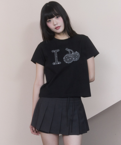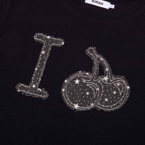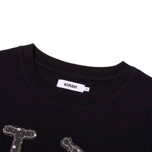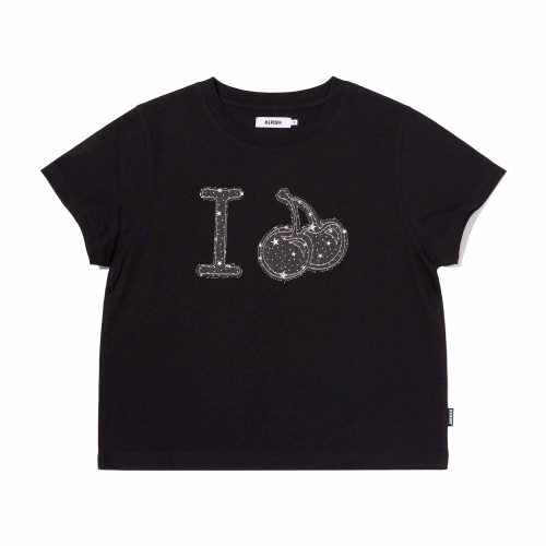 아이러브 키르시 데님 아플리케 크롭 티셔츠 [블랙]