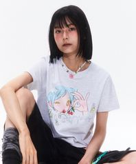 키르시 X 썬원버드 그래픽 스탠다드핏 티셔츠 [멜란지 그레이]