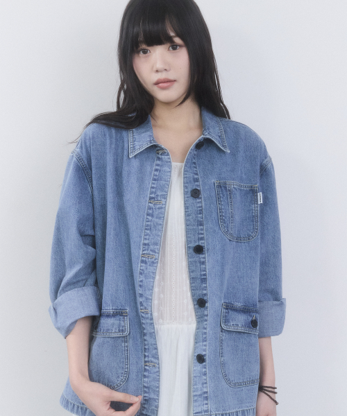 키르시 더블 포켓 하프 데님 자켓 [라이트 블루]