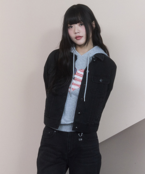 플레인 스탠다드핏 데님 자켓 [블랙]