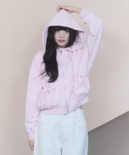 체리 아플리케 후드 집업 [라이트 핑크]
