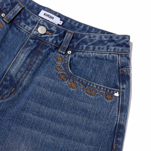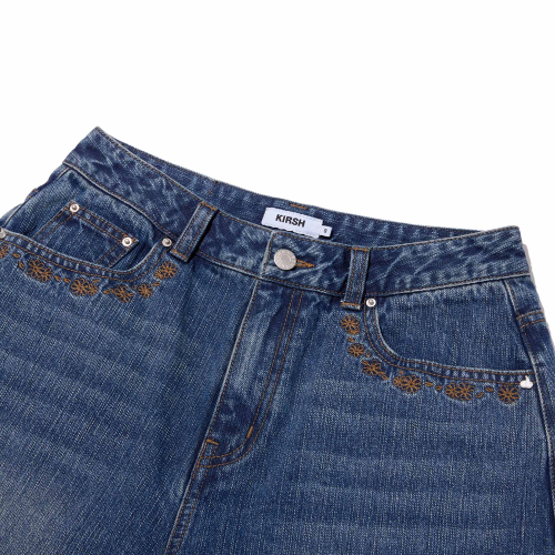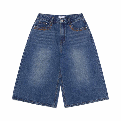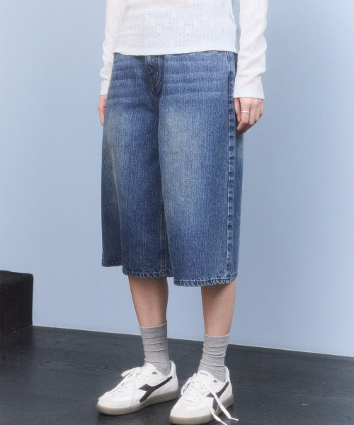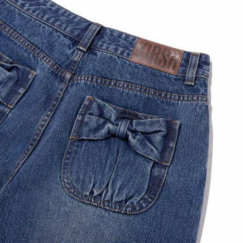 포켓 리본 디테일 와이드핏 데님 쇼츠 [블루]