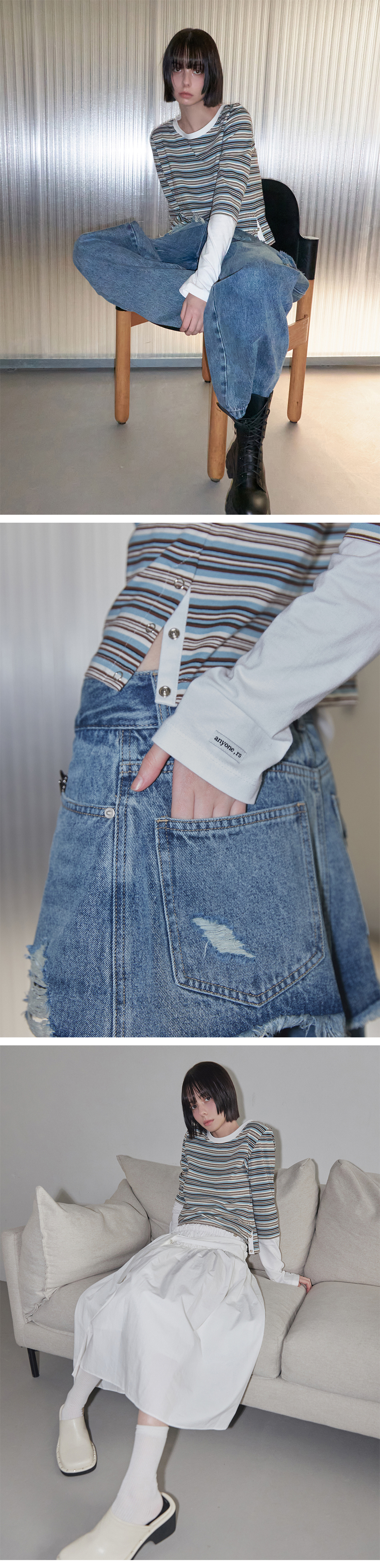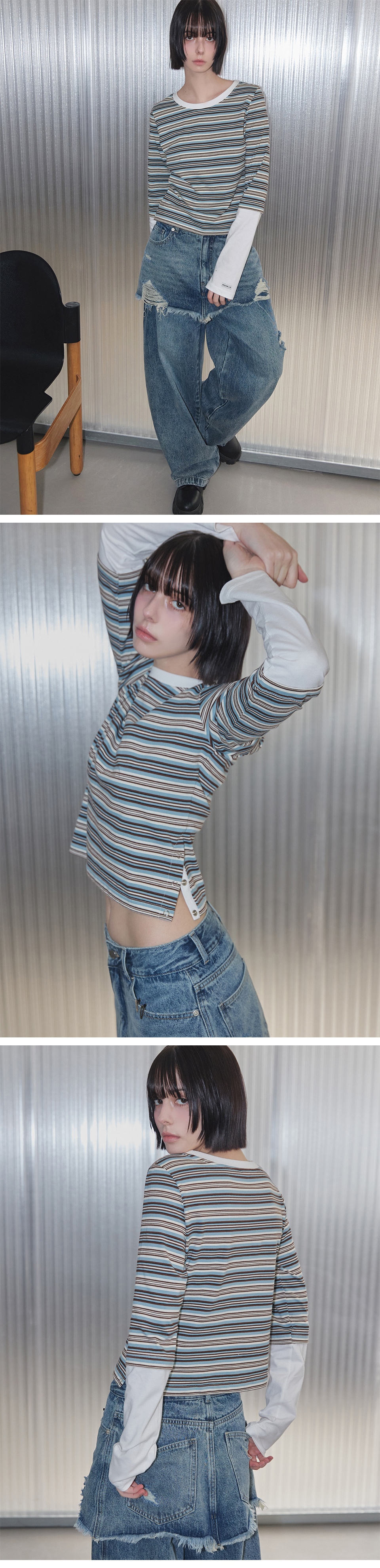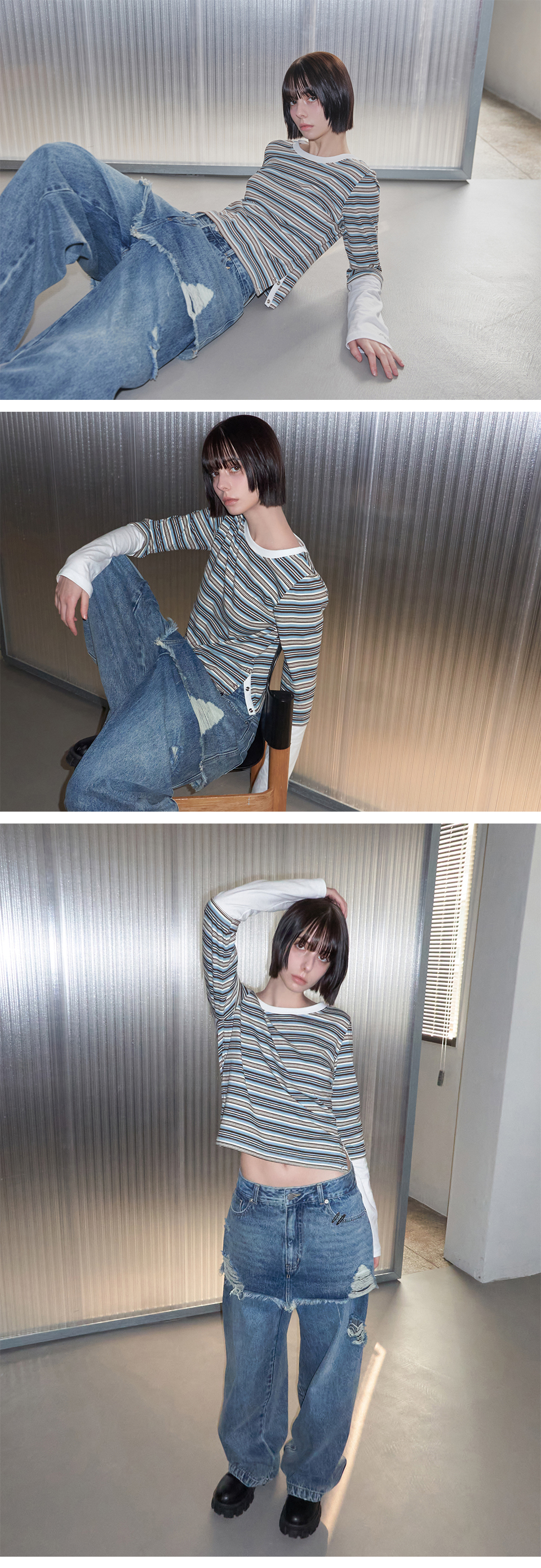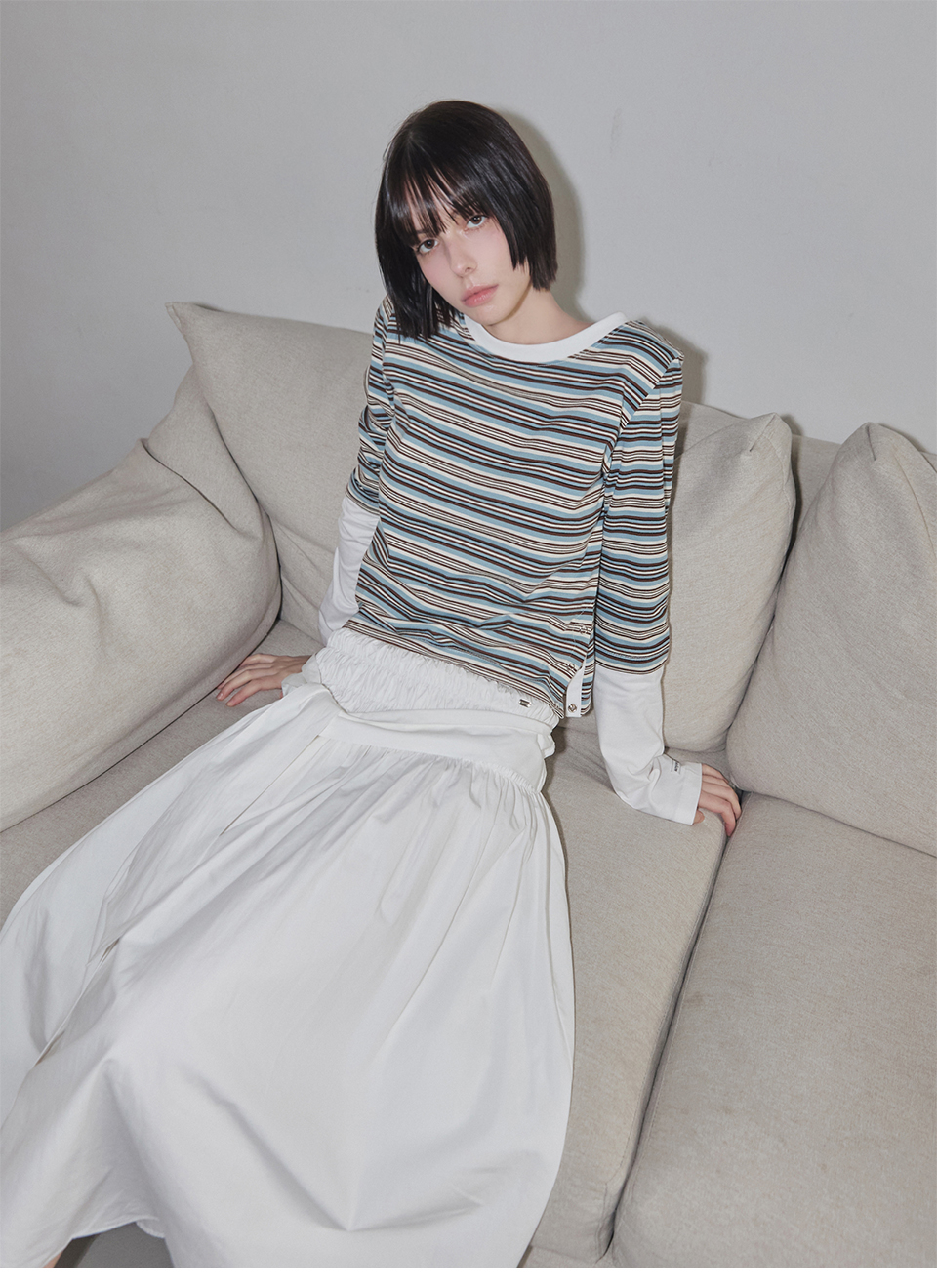 언발 컷팅 셔링 스트랩 사선 레이어드 롱슬리브리스 세트_2COLOR