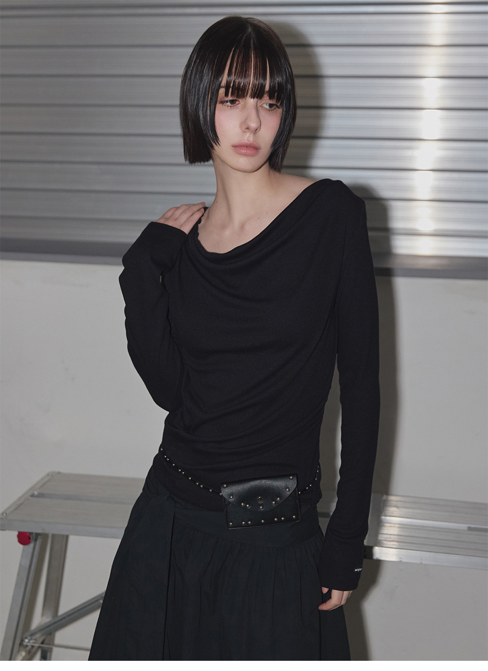 블러 레터링 루즈핏 롱슬리브 (블랙)