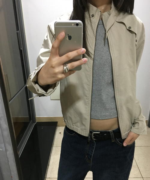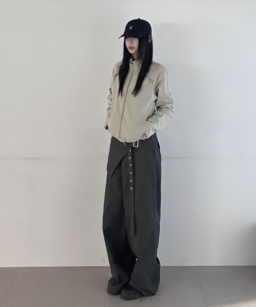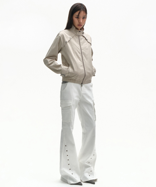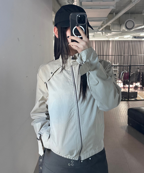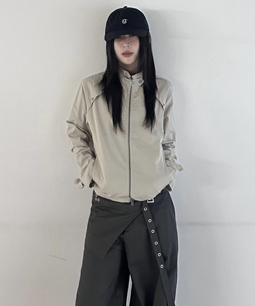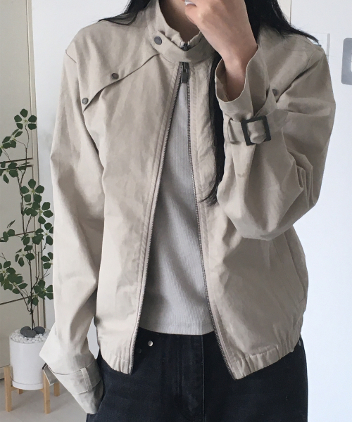 하이넥 스탠다드 스트랩 비조 포인트 블루종 집업 자켓 [베이지]