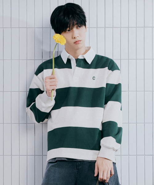 스몰 C 로고 럭비 맨투맨 오트밀