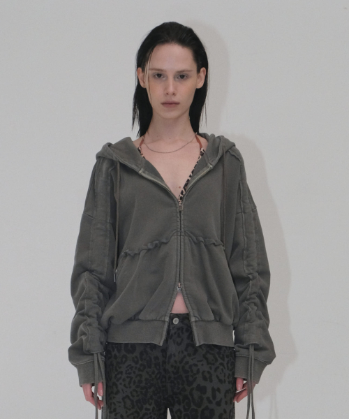 PIGMENT SHIRRING HOODIE [KHAKI]