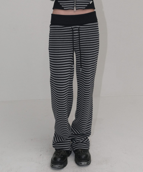 STRIPE JERSEY WIDE PANTS [CHARCOAL]