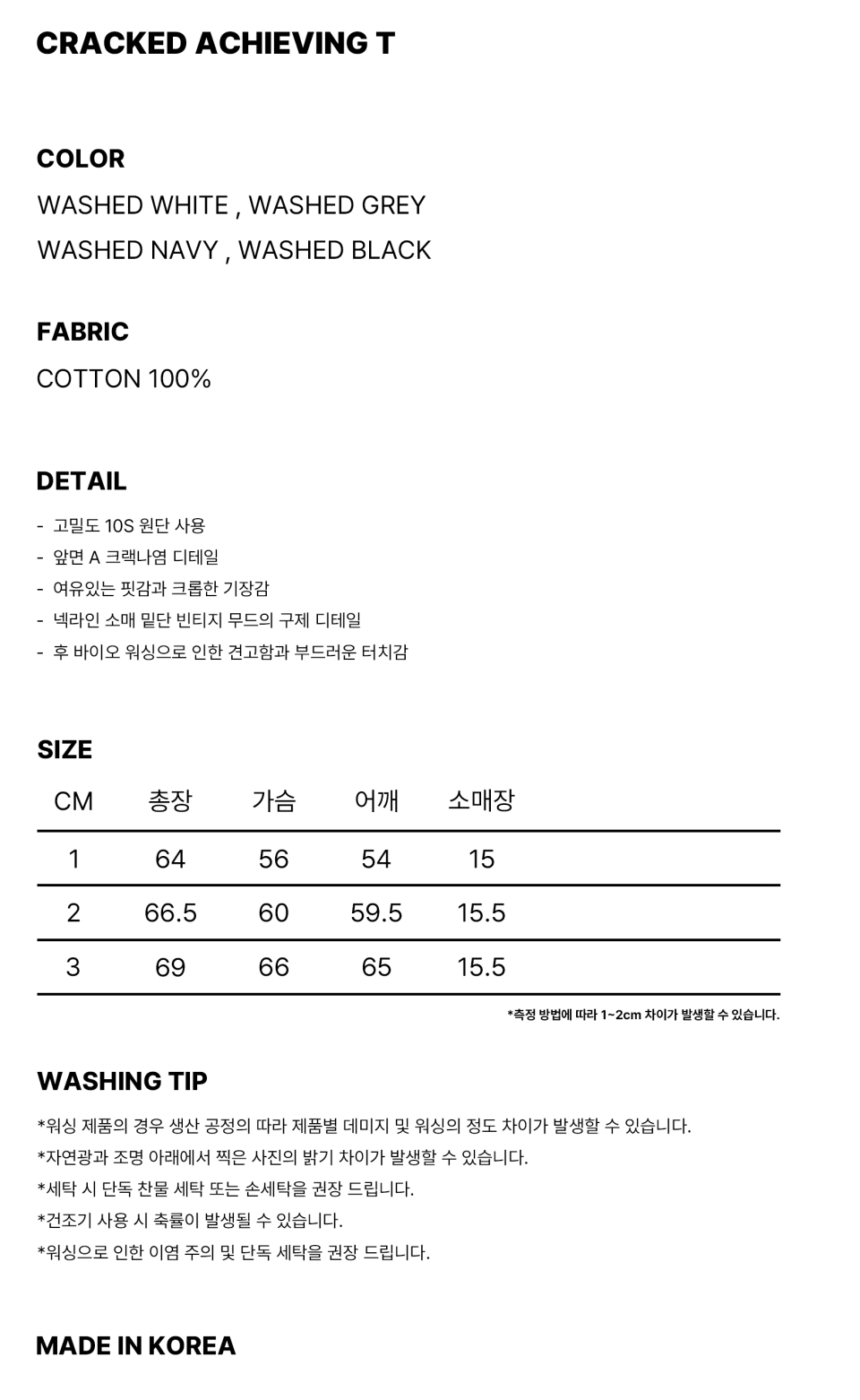 *워싱 제품의 경우 생산 공정의 따라 제품별 데미지 및 워싱의 정도 차이가 발생할 수 있습니다.