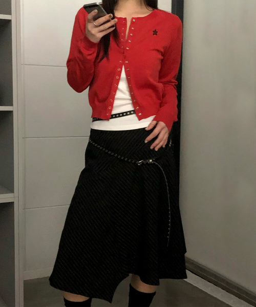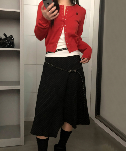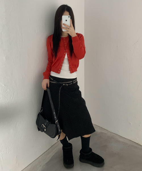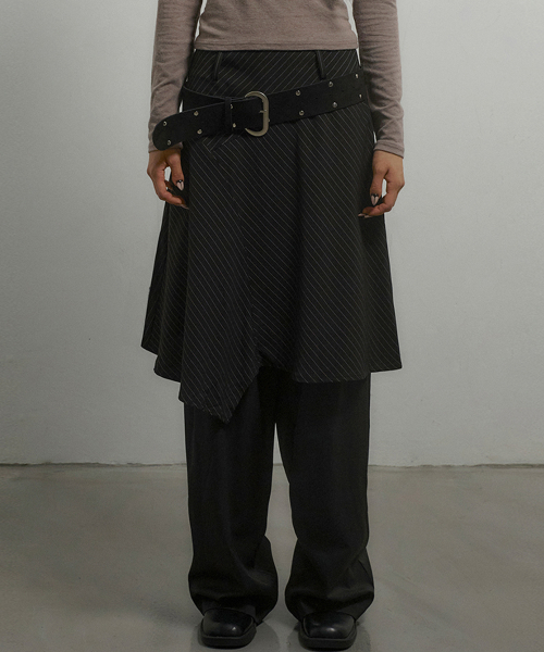 언발 컷팅 셔링 스트랩 사선 레이어드 롱슬리브리스 세트_2COLOR