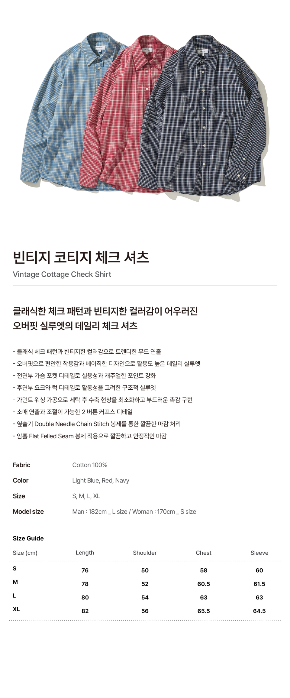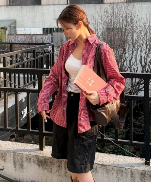 빈티지 코티지 체크 셔츠_레드