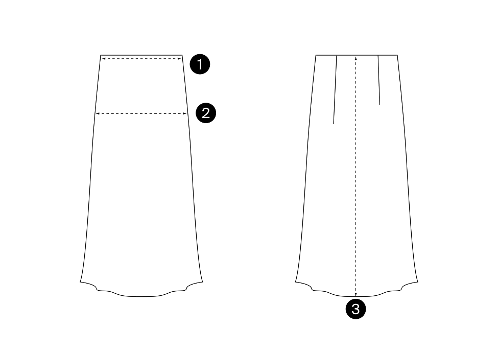 1 허리둘레 허리에서 가장 가는 부분으로 허리둘레를 측정합니다. 2 엉덩이둘레 엉덩이 높이에서 골반의 가장 넓은 부분 둘레를 측정합니다. 3 길이 의류의 최상단에서 하단까지 측정합니다. |