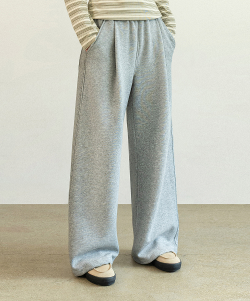 스틸 로고 데일리 원턱 와이드 스웻 팬츠_멜란지