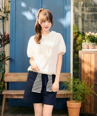 SHEER (시어) 여성 우븐 포켓 반팔 티셔츠_Dark Navy
