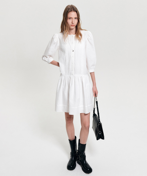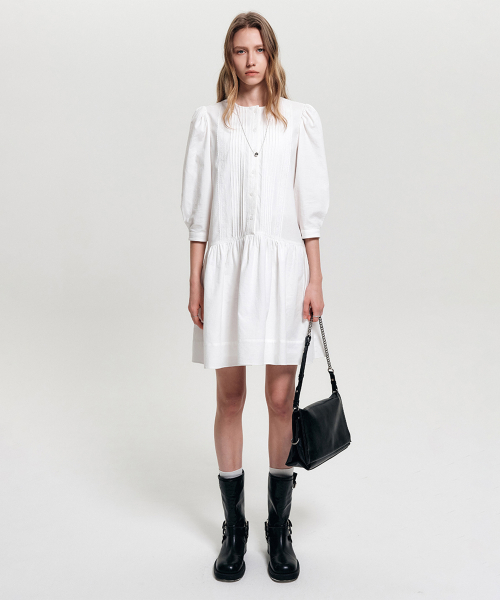 - 레이스와 핀턱 디테일로 여성스러운 무드 연출